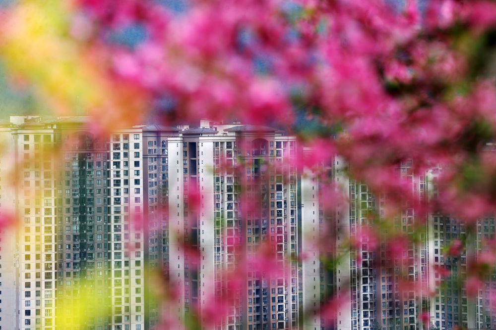 3月18日,桃花掩映着重庆市黔江区老城区一角。新华社发(杨敏摄)