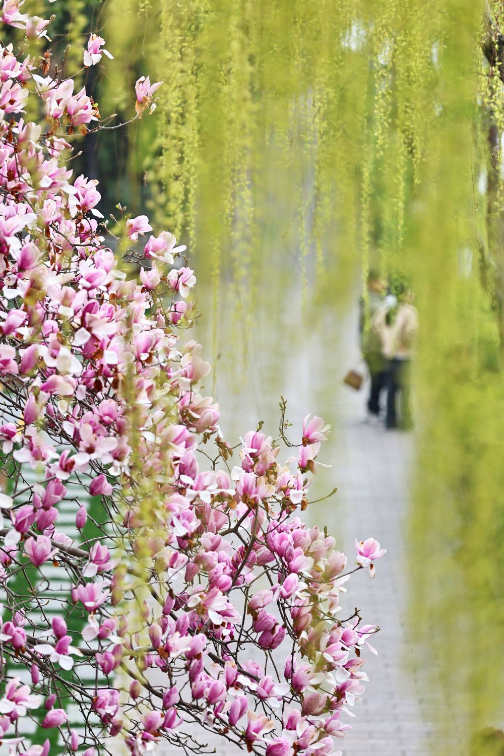 3月18日,人们在江苏省昆山市亭林园赏花拍照。新华社发(王须中摄)