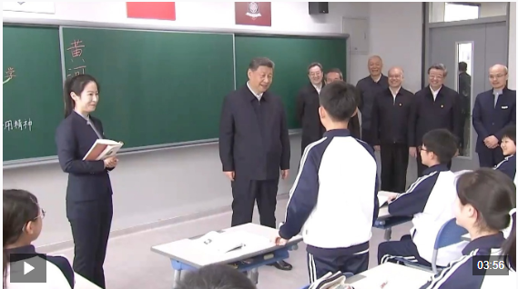 初一(2)班,一堂语文课正在进行中。习近平总书记走进这间教室,同师生交谈,了解教学情况。