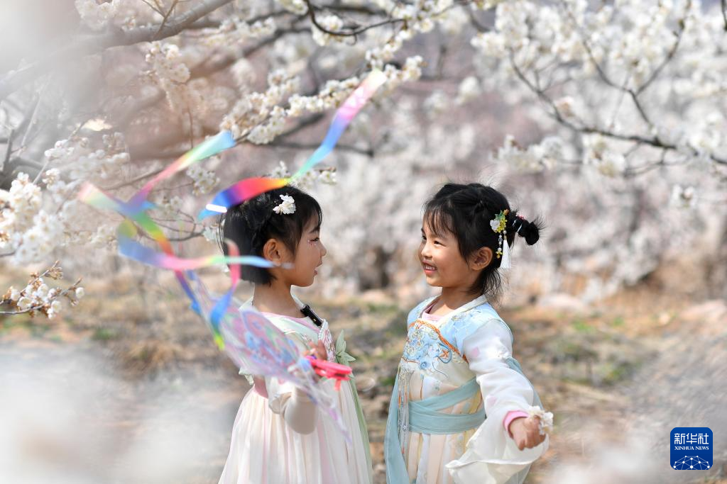 3月28日,孩子们在湖北省宜昌市秭归县屈原故里文化旅游区赏花游玩。新华社发(王辉富 摄)