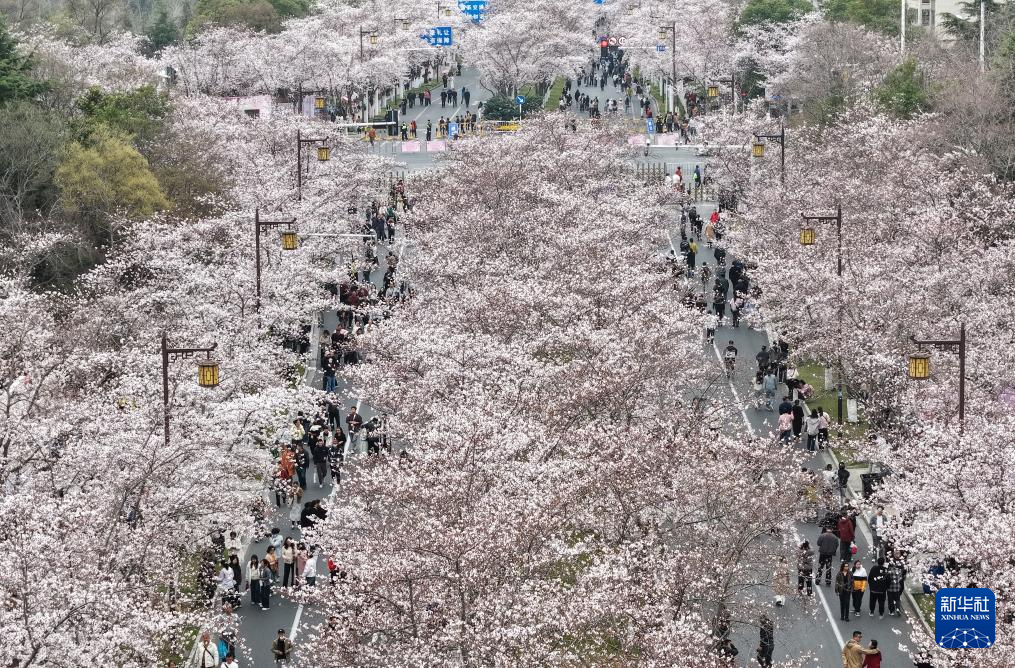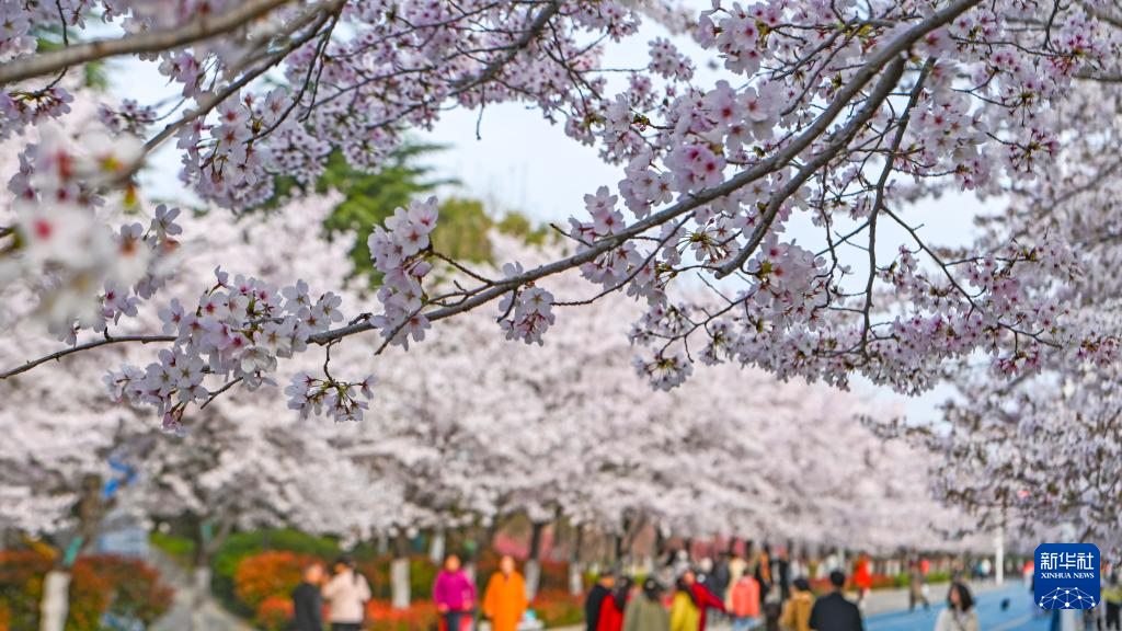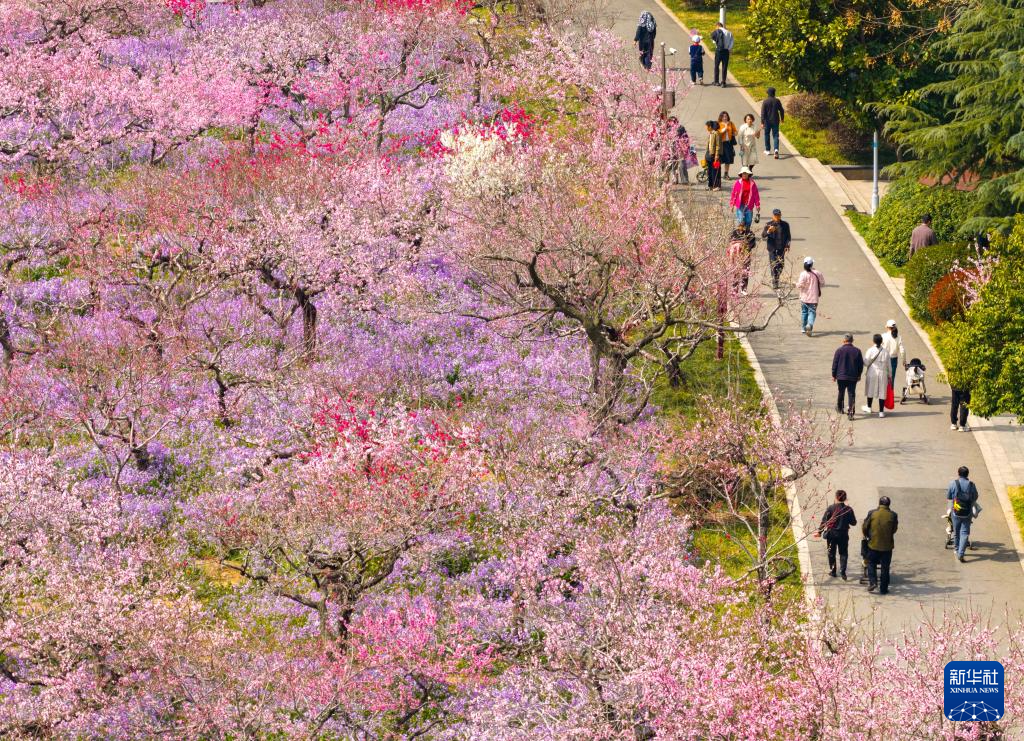 3月28日,游人在湖北省武汉市堤角公园赏花游览。新华社发(赵军 摄)