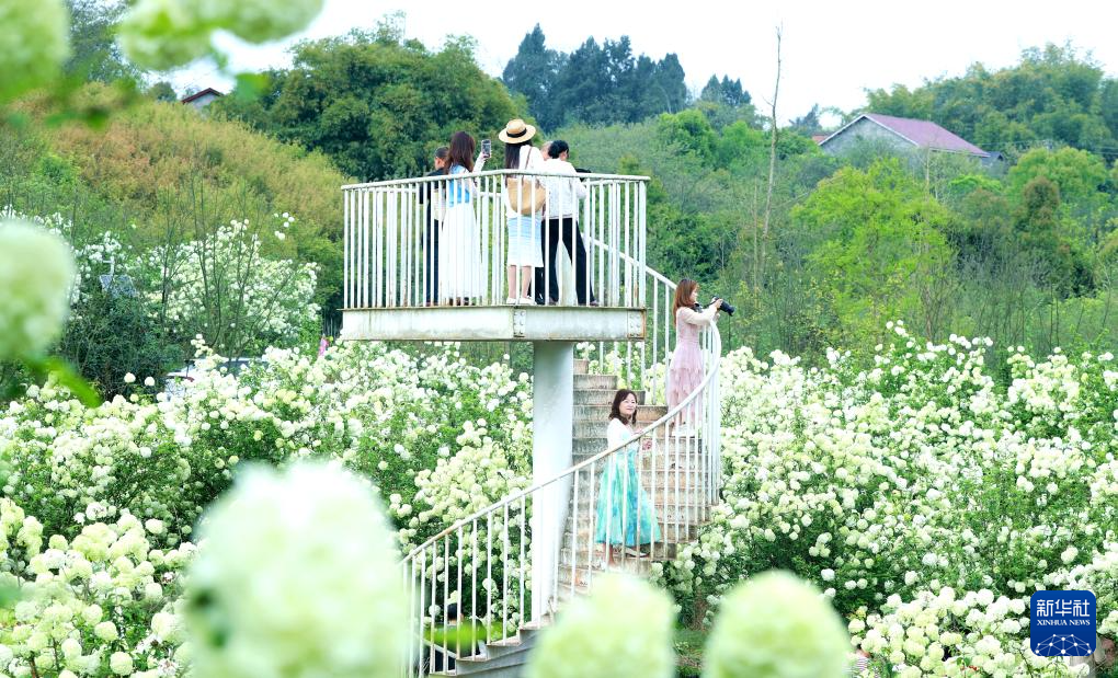 3月24日,游客在四川省泸州市纳溪区丰乐镇马村赏花游玩。新华社发(廖胜春 摄)