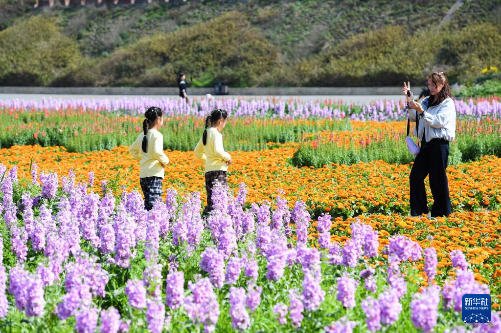 3月24日,游客在山东省青岛市即墨区赏花游览。新华社发(梁孝鹏 摄)