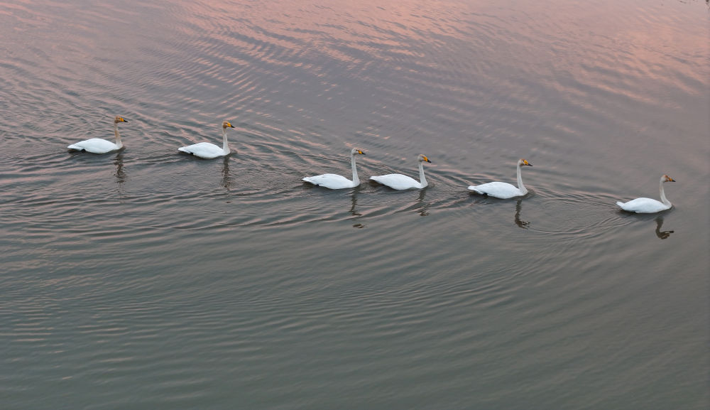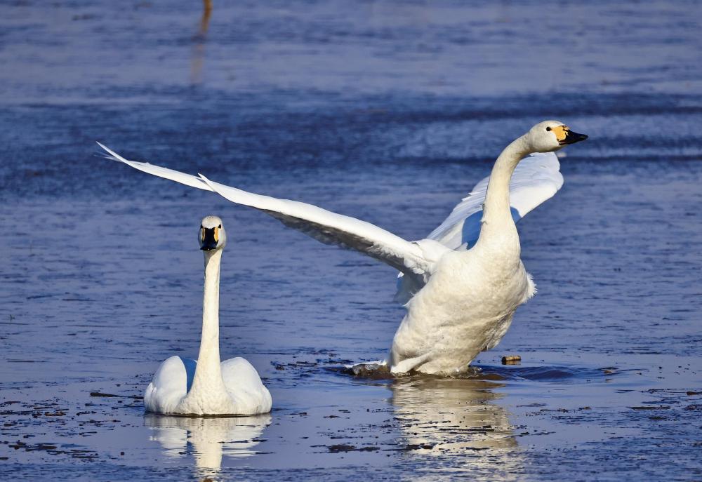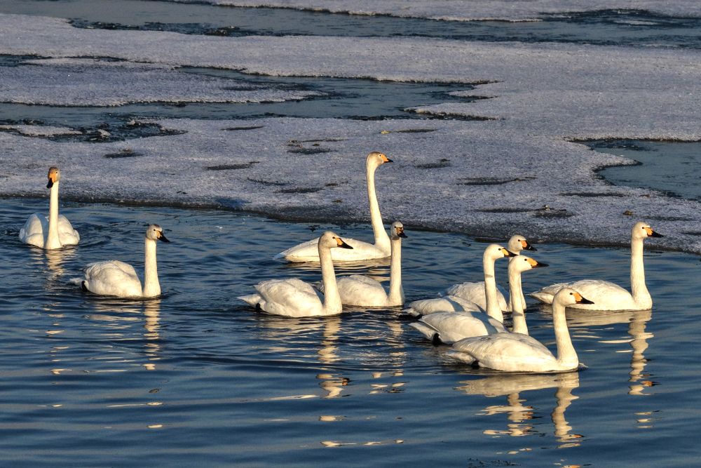 这是4月5日在松花江富锦段一处水域拍摄的天鹅。新华社发(刘万平摄)