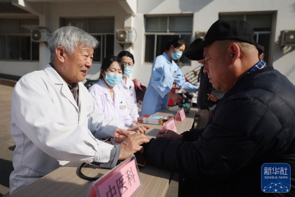 ↑ 4月7日,在山东省临沂市沂南县中医医院,医务人员为群众义诊。新华社发(王彦冰摄)