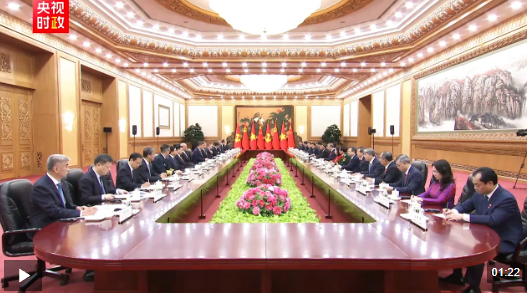 4月15日上午,中共中央总书记、国家主席习近平在人民大会堂同来华进行国事访问的越共中央总书记、国家主席苏林举行会谈。