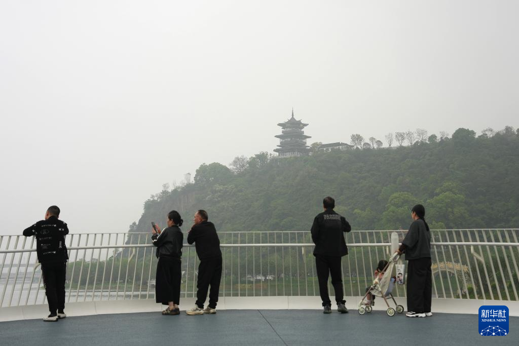 4月15日,游客在温州园博园省市城市展园重庆园参观。
