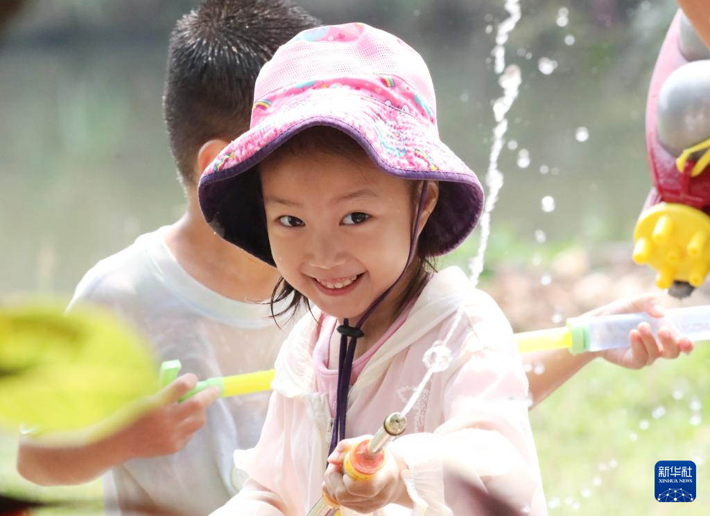 4月15日,小朋友参加泼水狂欢活动。新华社记者 江文耀 摄