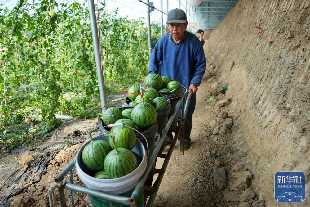 近日,山东省潍坊市昌乐县大面积种植的小型西瓜进入成熟期,当地瓜农忙着收获,供应市场。西瓜是昌乐县主要经济作物之一,常年种植面积达16万亩,年产量超过60万吨。
