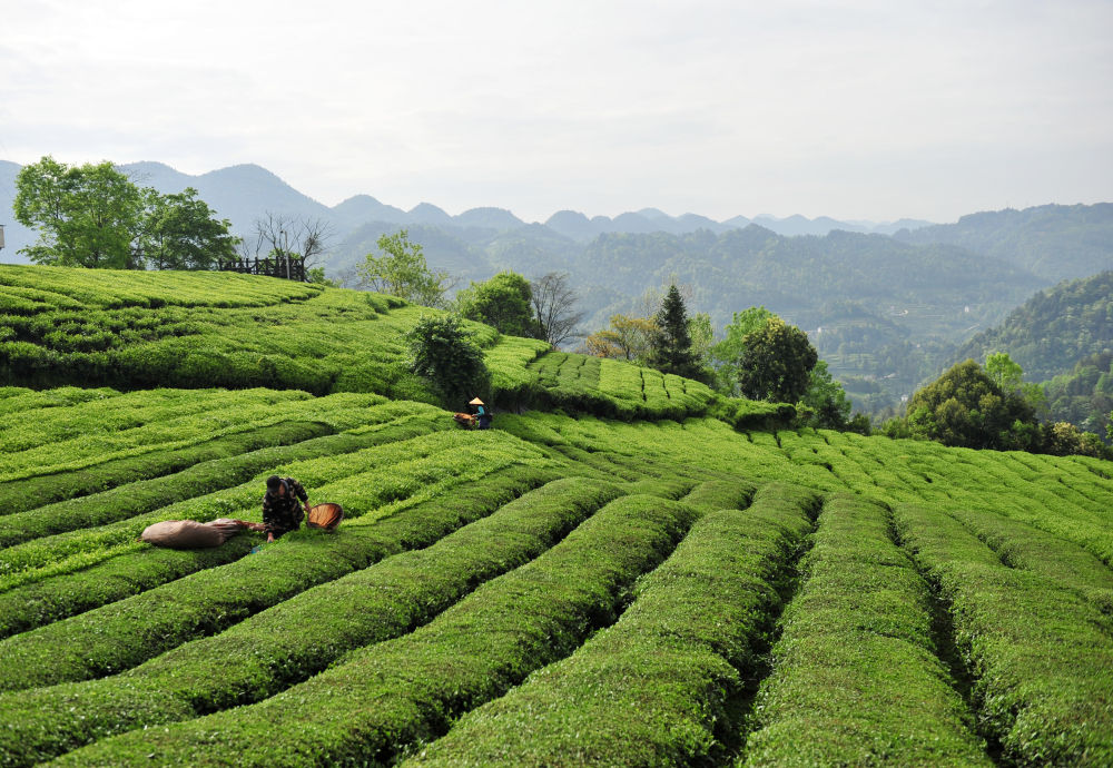 ↑ 4月19日,村民在湖北省宣恩县万寨乡伍家台村一茶园里采摘谷雨茶。新华社发(王辉富摄)
