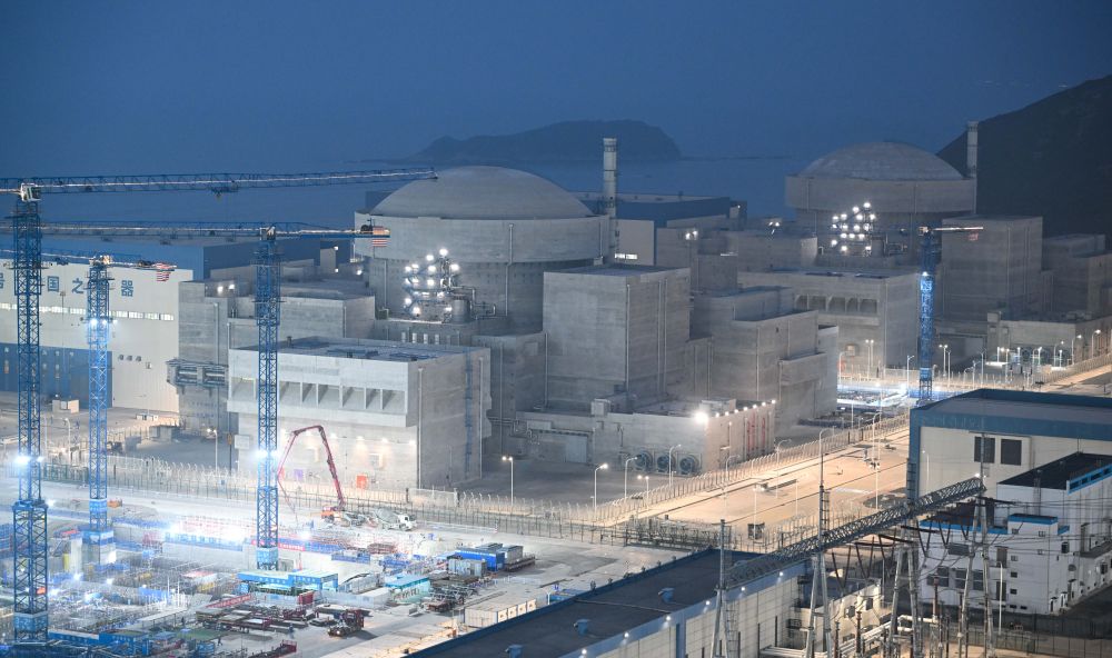 ↑ 这是4月19日拍摄的中广核广东太平岭核电项目1号机组(右)、2号机组夜景。新华社记者 邓华 摄
