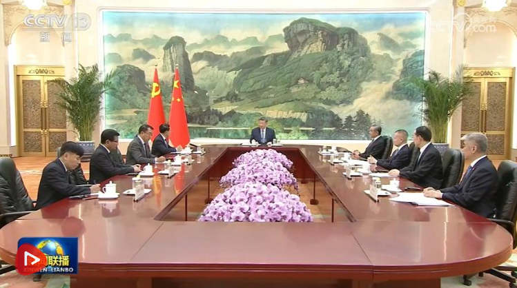 4月21日下午,中共中央总书记、国家主席习近平在人民大会堂会见作为老挝人民革命党中央总书记、国家主席通伦特使专程来访的老挝人革党中央政治局委员、常务副总理沙伦赛。