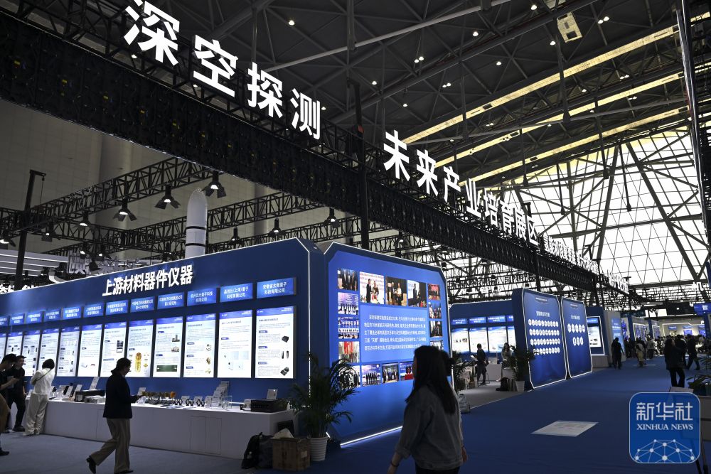 ↑ 4月26日,观众在第四届中国(安徽)科技创新成果转化交易会未来产业培育展区参观。新华社记者 黄博涵 摄